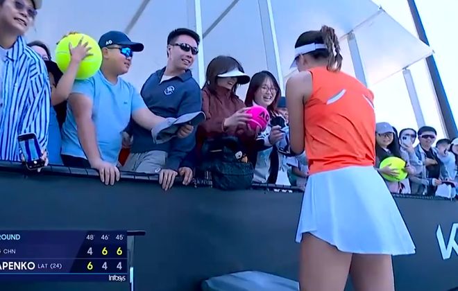 第三盘的第六局比赛,奥斯塔彭科先得1分,随后一球,奥斯塔彭科放短球,但是王欣瑜非常迅捷地赶了过去打了一个斜线得分。王欣瑜打出了一个“神仙球”。央视解说员张盛表示:“奥斯塔彭科有点大意了,以为这个短球能直接得分,但是王欣瑜这个赛季的跑动能力比以前强了很多。”有些遗憾的是,这一局还是被奥斯塔彭科保发,双方战成3比3。